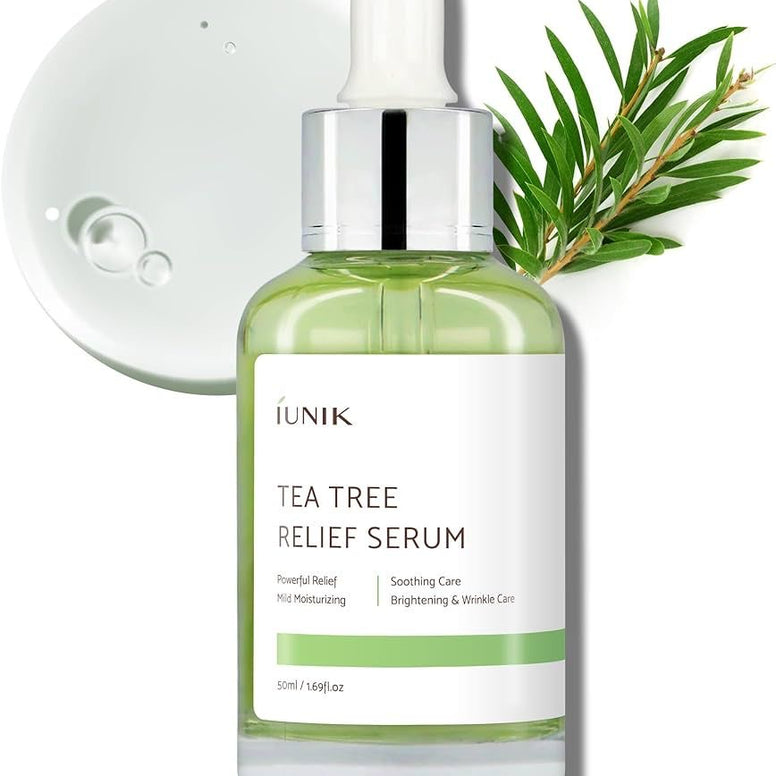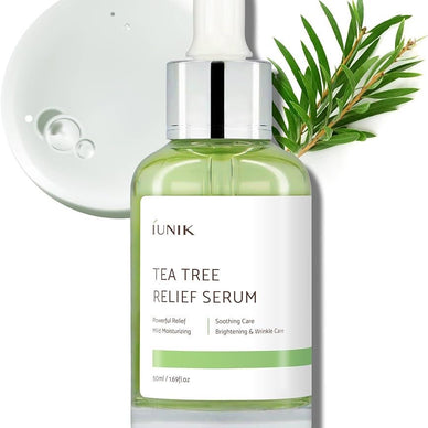 El Tea Tree Relief Serum de iUNIK es el aliado perfecto para las pieles con brotes de acné, exceso de grasa o sensibilidad. Su fórmula minimalista, pero altamente efectiva, combina un 67% de agua de hoja de árbol de té y un 19.5% de extracto de Centella Asiatica, ingredientes reconocidos por su capacidad para purificar, calmar y equilibrar la piel.